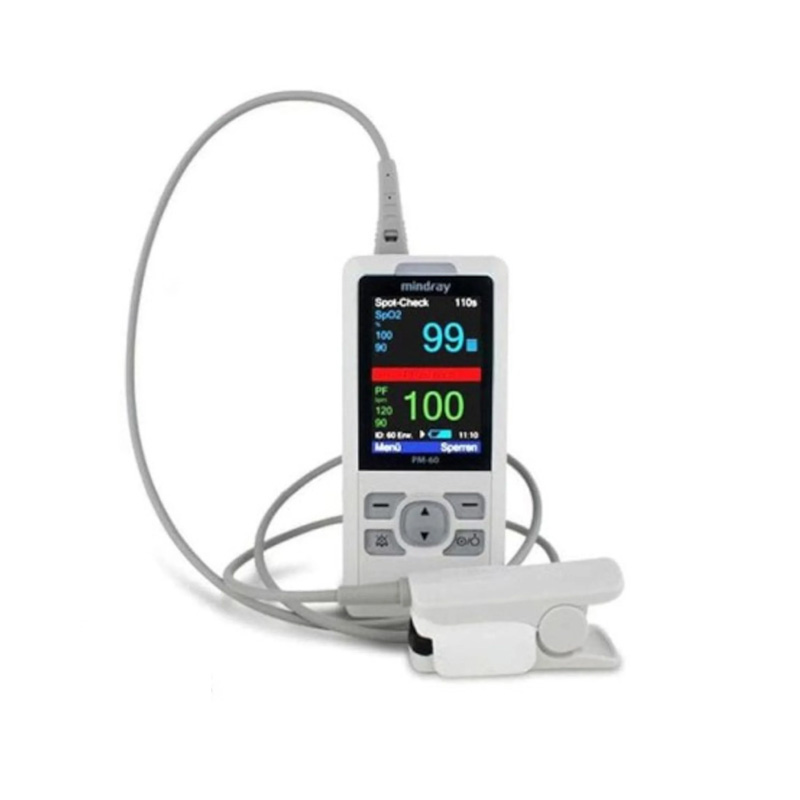 Mindray PM-60 Pulse Oximeter is a portable handheld device designed for reliable monitoring of oxygen saturation (SpO₂) and pulse rate in hospitals, clinics, and emergency settings. It features a clear display, simple operation, and compact lightweight design for easy bedside or spot-check use. The device supports multiple probe options and provides accurate, real-time measurements, helping healthcare professionals quickly assess patient respiratory status.
