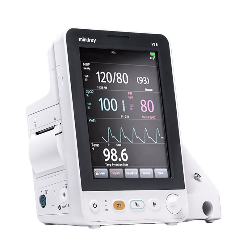 Mindray VS 8 Vital Signs Monitor is a professional vital-signs monitoring device designed for hospitals, clinics, and bedside observation. It supports measurements including NIBP, pulse rate, SpO₂, respiration rate, and temperature. The monitor features M